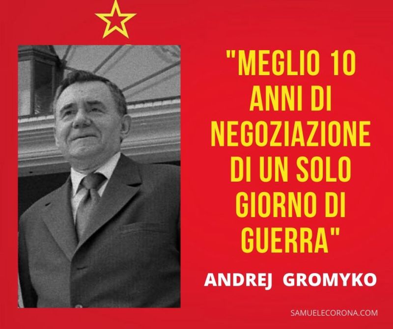 Sessantacinque anni fa, il 15 Febbraio 1957, Andrej Gromyko (1909-1989) divenne Ministro degli Esteri dell´URSS. Gromyko fu uno dei protagonisti per eccellenza dell´epoca della guerra fredda, politico con una carriera straordinaria, nacque in Bielorussia , nel 1939 entrò a trent´anni come dipendente nel ministero degli affari esteri. Nel 1943, all´età di trentaquattro anni divenne ambasciatore dell´Unione Sovietica a Washington ed iniziò la sua carriera segnando un´epoca. Fu protagonista della nascita dell´ONU nel 1945 e nel 1952 divenne ambasciatore dell´URSS nel Regno Unito. Nel 1957 divenne Ministro la cui durata fu di ventotto anni. Gromyko conobbe Stalin, Chrusciev, Brezhnev, Andropov, ecc. e nel 1985 fu egli ad appoggiare la candidatura di Gorbaciov. Gromyko fu un uomo colto, preparato, freddo, concentrato sul lavoro che fu la sua vita, viene anche ricordato per il suo stile impeccabile , per una vita rigorosa e molto chiusa. Viene ricordato da me per una frase che é il titolo anche di un libro scritto dal figlio "Meglio dieci anni di negoziazione di un solo giorno di guerra". Sarebbe importante che questa frase fosse lo slogan del nostro secolo e che venisse studiata, compresa ed applicata, perché la pace è un diritto fondamentale dell´uomo. Ciò sembrerebbe forse scontato e banale ma in questi giorni molti sembra l´abbiano dimenticata.