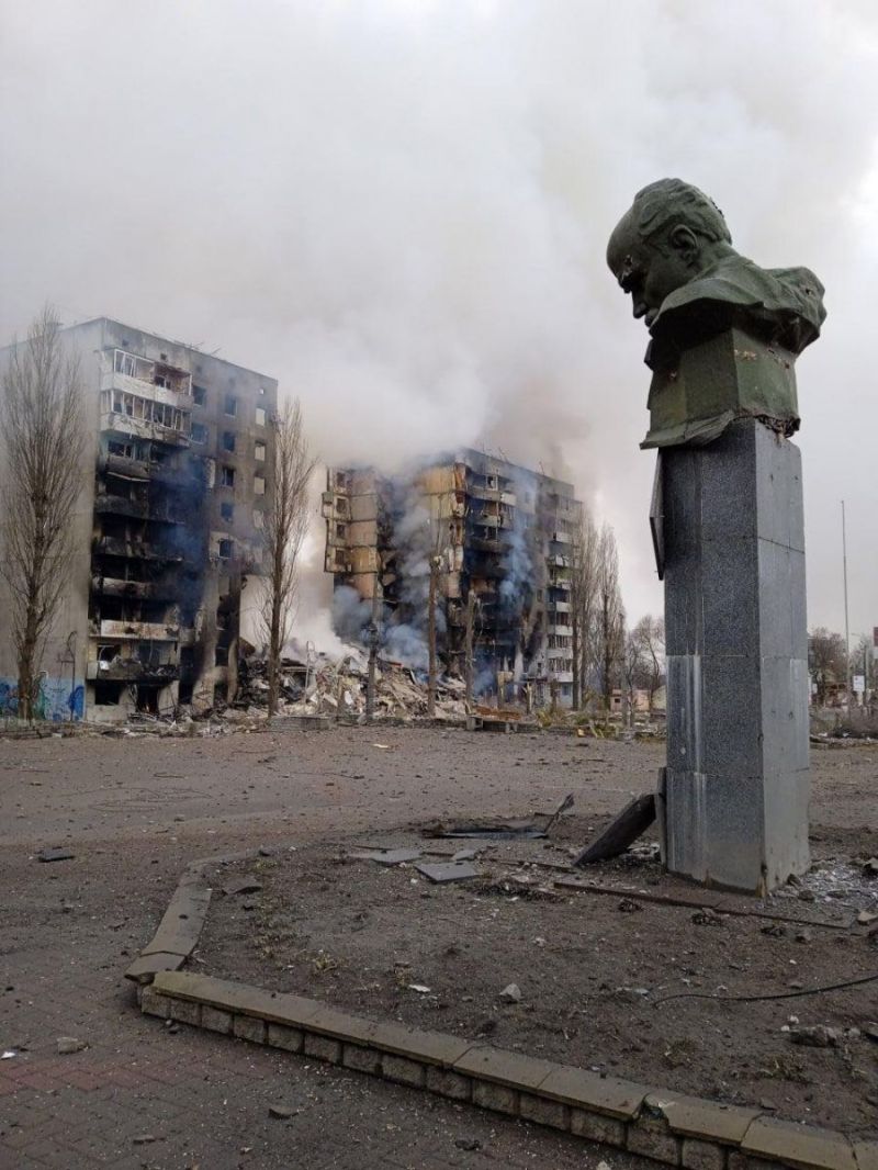 Borodjanka è una piccola cittadina ucraina che si trova a 45 km. da Kiev, ci vivono 13.300 persone. Fu occupata dal 1941 al 1943 dai tedeschi. Ieri, è stata colpita, numerosi palazzi abitativi, come da foto, sono stati danneggiati. In centro si trova la statua di Taras Schevchenko (1814-1861), scrittore, umanista e pittore ucraino, che viene considerato la massima voce della letteratura ucraina. La statua é danneggiata, simbolizza il dramma e la tragedia che sta vivendo il popolo ucraino in questi giorni.