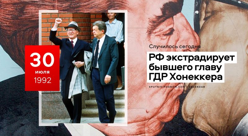 Il 30 Luglio 1992 Erich Honecker, simbolo per eccellenza della dittatura della DDR fu espulso da Mosca. La foto che condivido illustra Honecker in compagnia dell´Ambasciatore del Cile Clodomiro Almeyda mentre esce dall´edificio. Honecker con la moglie scappò segretamente nel Marzo 1991 da Berlino a Mosca su invito personale. di Gorbaciov. La situazione politica però stava cambiando con grande velocità in URSS e nel Dicembre 1991 Honcker fu avvisato dalle autorità competenti alcuni giorni prima del collasso dei Soviet di lasciare il Paese entro tre giorni. Honecker conosceva molto bene l´Ambasciatore del Cile a Mosca, C. Almeyda che vissuto per dieci anni in esilio nella DDR. Gli offri l´ospitalità che creò una crisi diplomatica notevole. Nel 1992 la situazione con Yeltsin cambiò radicalmente ed Honecker divenne persona non grata in Russia. Il 30 Luglio 1992 al mattino Honecker, 80enne con la moglie furono costretti a lasciare l´Ambasciata , furono portati all´aeroporto internazionale. Al loro arrivo a Berlino furono arrestati, accusato di crimini contro il suo popolo. Nel 1993 senza essere condannato, gli permisero di andare a vivere in Cile dove mori nel 1994. Honecker rimane nella storia non solo per quel bacio famoso con Brezhniev ma soprattutto per la sua incredibile fede fino all´ultimo giorno che il Muro (e la dittatura) fu un opera straordinariamente bella ed utile per difendere la libertà dei suoi cittadini. Lui ci credette...