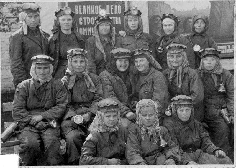 Nella storia dell´URSS, l´8 Agosto 1932 fu una data importante, su ordine di Stalin venne approvato il decreto che autorizzò alle donne di poter diventare minatrici. La propaganda sovietica recitava che, mentre nei paesi capitalisti le donne erano sfruttate, il potere sovietico offriva loro la libertà, esattamente quello di poter diventare anche minatrice. L´uguaglianza socialista, diceva il partito, abbatteva ogni barriera fra l´uomo e la donna, perché il PCUS garantiva il progresso. Effettivamente, all´inizio molte donne scelsero questo lavoro ma poi, durante le grandi purghe, anche le donne sovietiche finirono nei vari lager, come Magadan, per lavorare nelle miniere. Durante la grande guerra patriotica, l´80% del carbone venne estratto dalle donne e molte di esse dell´Est, durante l´occupazione sovietica furono deportate a Donbass, nell´Ucraina sovietica per lavorare nelle miniere, come racconta lo sconvolgente film ungherese "Eterno inverno". La legge sul lavoro delle minatrici fu ritirata nel 1957 , sei donne sovietiche furono decorate dal massimo riconoscimento del potere di quei tempi, "Eroine del lavoro socialista".