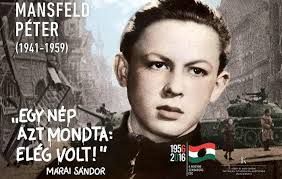 Sessantacinque anni fa, il 23 Ottobre 1956 iniziò in Ungheria la Rivolta contro la dittatura sovietica. Peter Mansfeld (1941-1959), all´epoca aveva 15 anni e faceva parte dei cosiddetti "avanti ragazzi di Buda, avanti ragazzi di Pest". Peter, figlio di operai, nutriva grandi ideali nonostante la giovane età. Non ha mai usato le armi durante la Rivoluzione ma aiutò i combattenti. Successivamente, venne arrestato e torturato, il regime voleva saper i nomi di altri combattenti ma egli, negò ogni collaborazione. Il regime attese il suo 18esimo compleanno, il 10 Marzo 1959 e poi, il 20 Marzo fu condannato a morte per "alto tradimento". Peter fu il più giovane combattente condannato a morte per impiccagione ed il suo corpo venne buttato in una fossa comune con altre vittime, sorvegliata dalla polizia segreta sempre 24 ore su 24 e perfino alla madre fu impedito di andare a rendere omaggio al figlio. Nel 1989 Peter fu riabilitato e sepolto con onori, dichiarato martire dell´Ungheria.