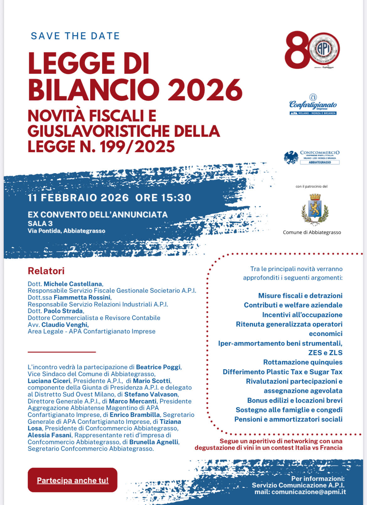 Il Comune di Abbiategrasso celebra i cittadini abbiatensi che saranno volontari a Milano-Cortina 2026. Sabato 31 gennaio alle ore 14.30 in Piazza Castello verrà scattata una foto di gruppo, presente anche una rappresentanza del Comune per &lsa ...